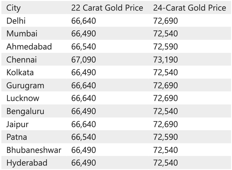 Examine current gold prices in several cities on June 3, 2024. (In grams/Rs)